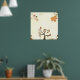 este poster pode ser personalizado e movido para o seu gosto. Com seu fundo branco esbranquiçado há uma árvore de rabisco com folhas no fundo. No topo há uma folha do lado direito e à esquerda há um aglomerado de impressões de folhas.
