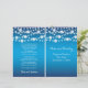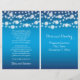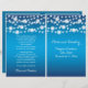 String de luzes e flocos de neve brancos cerimônia de casamento no inverno azul e programa dobrado em festas apresentando uma corda luminosa branca brilhante com flocos de neve brancos no topo sobre fundo gradiente azul. Esta design de casamento moderna e moderna faz parte de um casamento ou coleção, é perfeitamente personalizável e é perfeita para um casamento de Natal de inverno. Você terá que dobrá-lo no centro. Escolha apenas este tipo de valor de papel à medida que ele se dobra bem. Alguns elementos são cortesia de vectorportal.com.