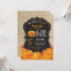 Convite do primeiro aniversario da abóbora do Dia das Bruxas com fundo da laranja e da serapilheira. Primeiro aniversário. Partido de Bday do menino ou da menina. Para uma personalização mais adicional, clique por favor "personalizam-no" botão e usam-nos nossa ferramenta de design para alterar este modelo.