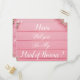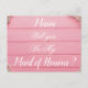 Serás minha dama de honra convite de casamento cartão postal. Personalize o nome da dama de honra, nome da noiva e mensagens necessárias. Design floral de madeira rosa.