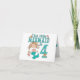Sob o tema do mar, quarto aniversário com a sereia fofa vestindo turquesa e rosa-casca, com cavalo-marinho e estrelas-do-mar. O texto diz "Esta sereia é 4".