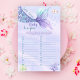 "Uma Sereia Doce está a caminho", "Sob o Mar", a festa de chuveiro de bebês de menina. Matizes roxos e azuis pastéis de aquarelas, com rabo de sereia, peixe palhaço e corais.