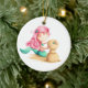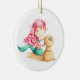 Sereia branca com ornamento cerâmico cor-de-rosa. A sereia está construindo um boneco de neve ou sandman. Perfeito para lugares com Natal quente e amantes da sereia. Ilustrada por Patricia Alvarez.