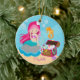 Personalize sereia cor-de-rosa bonito datado os enfeites de natal personalizados ajustados em um fundo da bolha da água azul com uma arca do tesouro & um cavalo marinho. Visite nossa loja para ver esta sereia adorável nos uma variedade de cores do cabelo & da roupa.