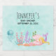 Etiquetas de chá de fraldas ou outras garrafas de evento com uma ilustração de cor de água fofa. Uma sereia com cabelo louro longo, escamas roxas e pérolas brancas. Querido e ilustração encantadora. Uma água-viva feliz também flutua.