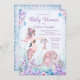 A Sereia convida com uma adorável sereia a segurar uma linda roupa de sereia bebê num lindo roxo e azul lacrimogênio sob o fundo do mar. Este convite para chá de fraldas de sereia é facilmente personalizado para o seu evento simplesmente adicionando os seus detalhes.