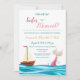 Faça um salto com este gênero náutico revelar convite! De um lado, um veleiro vermelho e marrom faz uma brincadeira num lago azul. Do outro lado, um conto de sereia cor-de-rosa salta bravamente, mergulhando no fundo do mar. A legenda, "O que será? Um marinheiro ou sereia?" anuncia a chegada do seu novo bebê em letras-guião. Perfeito para a futura mãe que ama veleiros e temas oceânicos. Celebre o seu bebê este verão com este belo e náutico convite revelador!