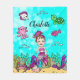 Adicione o nome da sua filha a esta mão bonita desenhada em negrito e de cor clara Sob a sereia náutica do Mar e o cobertor de velhas amigas da criatura do mar. Este é um presente perfeito para qualquer garotinha que ama as sereias! Pequena Sereia com cabelo castanho.