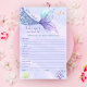"Uma Sereia doce está a caminho", festa de baby shower temática "Sob o Mar" para menina. Tons pastel aqua e azul, apresentando cauda de sereia divertida, peixe-palhaço e corais.
