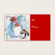 Pintura pastel original branca e colorida, em cor vermelha azul branca, boneco de neve e pinguim, tocando violino na neve de inverno com flores vermelhas, floresce.por Búlgaro Lumini (c)