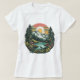 Abraçar a selva serena com esta camiseta refinada, apresentando um trabalho de arte mesmerizante que captura a beleza tranquila da natureza. A intrincada design mostra uma paisagem onde montanhas majestosas encontram um lago pacífico, sob o brilho suave de um pôr do sol, com um veado solitário adicionando um elemento de graça. Isto não é apenas roupa; é uma peça de arte vestida que traz o fascínio da natureza ao seu guarda-roupa.