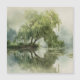Greeting Card - Calming watercolor willow tree with soft green foliage and peaceful lake reflection. Ideal for nature lovers, mindfulness seekers, and those who love tranquil, relaxing scenery.