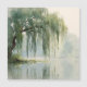 Greeting Card - Calming watercolor willow tree with soft green foliage and peaceful lake reflection. Ideal for nature lovers, mindfulness seekers, and those who love tranquil, relaxing scenery.