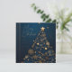 Design de cartão de Natal abstrato e elegante com fundo azul escuro e dourado