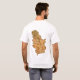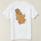 A frente desta camiseta tem uma pequena bandeira sérvia com a sua familiar casaco de braços sobre bandas vermelhas, azuis e brancas, enquanto a parte de trás exibe um mapa do alivio da Sérvia. Disponível em t-shirts, camisas de suor, polos, capas compridas e muito mais.