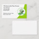 Cartões de visitas de estilo moderno do serviço de limpeza profissional criados com um emblema de material de limpeza legal que podem ser usados nas nossas cartas e pop verde brilhante que faz a sua placa de visita sobressair.