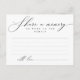 Este é o script romântico moderno, Serviço Funerário, Compartilhe uma memória ou palavra para a família, simpatia, cartão de serviço memorial, em tema preto e branco.