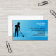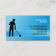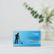 Nesta cartão de visita dos Serviços de Limpeza, a silhueta de um homem que limpa o chão com um esfregão forma a imagem principal sobre um fundo azul de gradiente listrado. Personalize este cartão imediatamente com seu nome e detalhes.