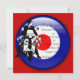 retro olha o patinete de estilo 60 em alvo vermelho e azul 3d, presente de excelente para qualquer amante de patinetes antigos ou cultura de modelo 60 anos