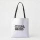 This minimalist tote bag features the bold outline slogan "Set Goals. Take Notes. Own 2025." — designed to inspire ambition and focus every day.