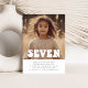 Um convite de 7 Aniversário com sua própria foto e a palavra 'sete' em uma fonte de estilo ranhura sobre o topo. Perfeito para a sua Festa de aniversário com tema retrô!