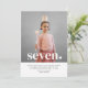 Um simples convite para o Sétimo Aniversário, que inclui a sua própria fotografia e as palavras "sete" no topo, juntamente com um coração. Você pode editar todo o texto mais a cor do texto e o coração.