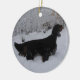 Setter de Gordon em um ornamento da tempestade de neve. Ornamento frente e verso que caracteriza um Gordon mais idoso em um lado e em um filhote de cachorro de Gordon no outro. Ambos os cães que estão na neve profunda quando a neve cair.