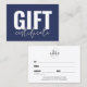 Seu Marinho de logotipo Certificado de presente comercial azul. Adicione seu logotipo para torná-lo seu. Um certificado de presente simples e divertido para marcas corporativas, pequenas empresas ou indivíduos como artistas de maquiagem, estéticos, cabeleireiros e muito mais! Agora é azul escuro, cinza e coloração branca, mas você pode mudar qualquer uma das cores para o que quiser usar! Uma mistura de tipografia moderna e escrita para um olhar profissional, mas chique.