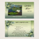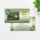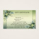 Cartão de negócios de certificado de presente com sua própria foto (opcional) emoldurada por um design de vegetação aquarela em um fundo gradiente verde. Um ótimo modelo de certificado de presente ou cartão de negócios para spa, terapeuta de massagem, esteticista e qualquer um na área de bem-estar.