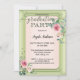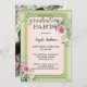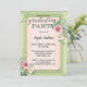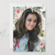 Convite para festa de formatura elegante com sua própria foto com uma camada de rosa de aquarela no verso. A frente mostra seu texto personalizado com um cabeçalho de script verde (opcional) em um design cor-de-rosa branco verde-cinza com rosas de aquarela.