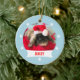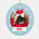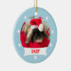 Este Enfeites de natal bonitinho pode ser personalizado com o nome do seu coelho e a foto do seu coelho. O design do floco de neve aparece na frente e atrás para fazer um adorno bonito para o seu coelho especial. Copyright Peaches o gato de Tuxedo