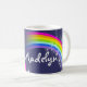 Arco-íris brilhante e colorido "que seus" miúdos conhecidos agridem. Presente perfeito para uma criança vibrante. A caneca lê: Madelyn ou personaliza esta caneca com o nome de sua escolha até 7 letras. Caneca projetada exclusivamente por Sarah Trett.