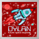 Poster de espaço para crianças de foguetes gráficos de desenho animado. Excelente para a sala temática espacial de um futuro explorador espacial. Personalize este item com o nome do seu filho (até 5 letras). Este exemplo diz: Dylan. Desenvolvido exclusivamente pela Sarah Trett.