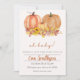 Celebre o seu pequeno com este convite revelado pelo gênero de abóbora de folhagem boho neutra do outono! Um leito de folhas e flores de outono sob um trio de abóboras laranja cria um olhar rústico e sofisticado que é perfeito para o seu gênero revelar. O esquema neutro de cor de laranja, bege e branco ajuda a fazer disso um convite ideal para partidos e revelações neutros em relação ao gênero Fall. A combinação de texto cursivo e tradicional junta o olhar para um sentimento único e vintage!