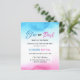 Um gênero de bebê no orçamento revela convite de festas. Em fundo branco, tinta aquosa azul e rosa forma as bordas. O texto da tipografia diz azul ou rosa, o que você acha? Personalize adicionando seu evento de cheio e os detalhes de contato à frente e atrás.