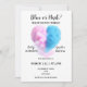O gênero com os temas fumaça azul e rosa revela o convite da festa
