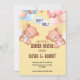 Celebre a sua chegada com este adorável modelo de convite do ursinho de pelúcia. Este design encantador apresenta ursos brincalhões flutuando em balões coloridos de ar quente, perfeitos para criar uma atmosfera divertida e balbuciosa para sua festa reveladora de gênero. Personalize facilmente este convite com os detalhes do seu partido para uma experiência única e memorável.