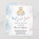 Para um chá de fraldas revelador de gênero. Um fundo branco chic. Decorrido com poeira brilhante, azul cinzento e rosa. Um ursinho com balões brancos, azuis e cor-de-rosa. Personalize e adicione o nome da mãe a ser e os detalhes da festa. O nome e o texto: Rapaz? Rapariga? Escrevem-se com um guião estilo manuscrito