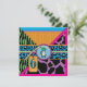impressões Safari, girafa, zebra e chita e um padrão de bolinhas, com macacos pendurados em uma videira e etiquetas de aparência 3D, arcos, cartões de convite para o sexto aniversário.