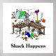 Esta cabana tem todo o tipo de coisas acontecendo. ::Spark! Você pode interpretar isso como uma Home Brew Shack ou apenas uma cabana bagunçada. Personalize a poster para dizer o que quiser. É uma decoração divertida para qualquer cabana do Ham....bagunçado ou legal. Desenhada por Sheila Cicchi no endereço Brownielocks.com Todos os direitos reservados.