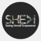 SHE>Estou vendo um adesivo redondo clássico autoal