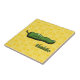 Um pimenta verde de shishito chili, também conhecido como kwari-gochu em coreano, é decorado com padrões inspirados em designs coreanos e se senta sobre um fundo amarelo com uma versão menor do mesmo padrão e uma etiqueta de roteiro no canto. Este pimento suave é consumido por toda a Coreia e no Japão cru e cozido.