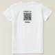 T-shirt para uma empresa que tem o Código QR na frente e também uma mensagem Seguir-nos Online com o Código QR na parte traseira. Mostra o Código QR para clientes, visitantes, turistas, etc., tanto na frente como no verso. Existem vários sites que permitem criar e baixar códigos QR gratuitamente. Os códigos QR podem ser criados para sites, e-mails, Wifi, Vcards e muitos outros usos. Um exemplo é https://www.qr-code-generator.com
