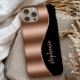Este design apresenta uma imagem de folha falsa rosa de ouro cúbica à esquerda, na forma de uma onda limitada com brilho falsa rosa de ouro. À direita, personalize-o com o seu nome na fonte de escrita manual em rosa num fundo preto.