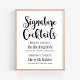 Posters / cartazes de assinatura de chic casuais contém tipografia de na moda com receitas de bebida personalizadas para noiva e noivo. Esquema clássico de cores preto e branco. Pronto para personalizar o seu evento.
