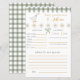 Capture heartfelt memories with this Silly Goose Is Soon to Be on the Loose Baby Predictions and Advice card. Featuring the coordinating green gingham background and sweet goose with coquette bow, this baby shower keepsake card invites guests to share advice, predictions, and well wishes. Pair with the matching guest book, invitations, and thank you cards from the Silly Goose baby shower collection for a cohesive and meaningful baby boy or girl shower experience.
