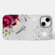 Fundo de aspecto fino prateado, decorado com pó sujo. Flores de borgonha, flores. Personalize e adicione seu nome. O nome em preto é escrito com um moderno e moderno estilo escrito à mão.