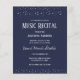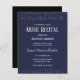 Os realces do confete de brilho dourado e maravilhoso na borda superior e inferior. Notas falsas de música prateada no topo do convite. Convites de prata e azul elegantes e música simples. Excelente para piano, flauta, clarinete, trompete, violino, guitarra ou vários considerandos de música para estudantes. Genérica para vários tipos de instrumentos.