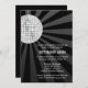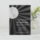 Uma discoteca única, o convite de Bat Mitzvah. Apresentando uma bola prateada em um fundo preto. Moderno e moderno — personalize facilmente seu evento!