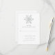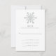 Esta placa de RSVP de casamento no inverno e brilho apresenta um falso falso floco de neve brilhante em prata para um visual elegante de feriado.